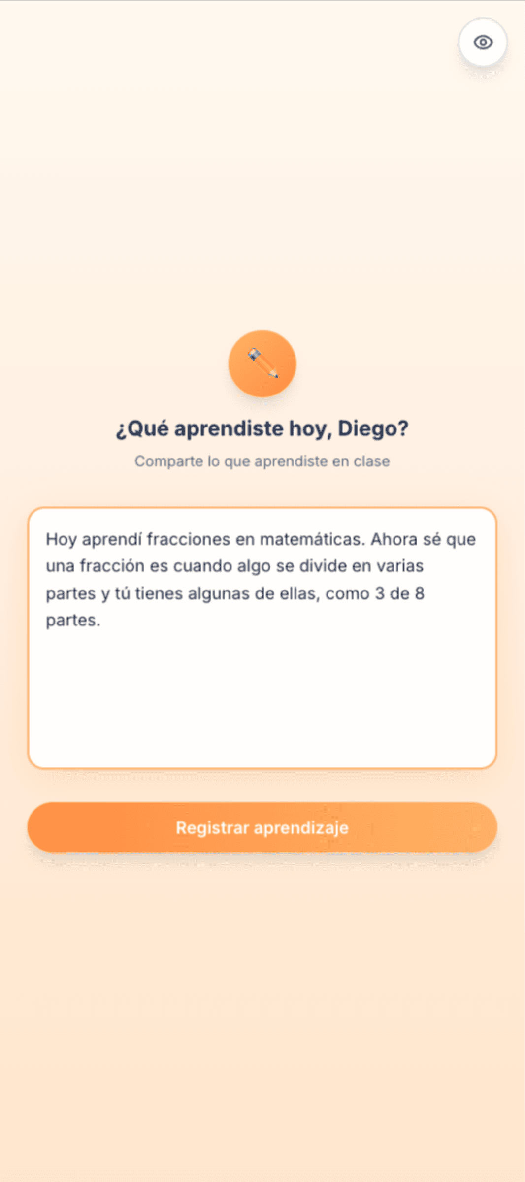 Tu hijo registra lo que aprendió en menos de 30 segundos, por voz o texto, (tranquilo este dato lo pide el profesor, con newvia profesores) para que cada aprendizaje quede guardado y no se pierda.